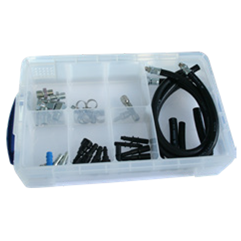 Connector kit with connection adapters for fuel systems for diesel and petrol engines.